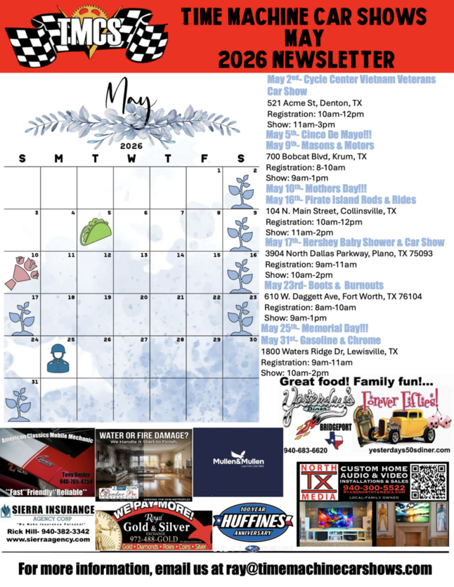 -Saturday, May 9th- Mason's & Motors (Krum, TX)